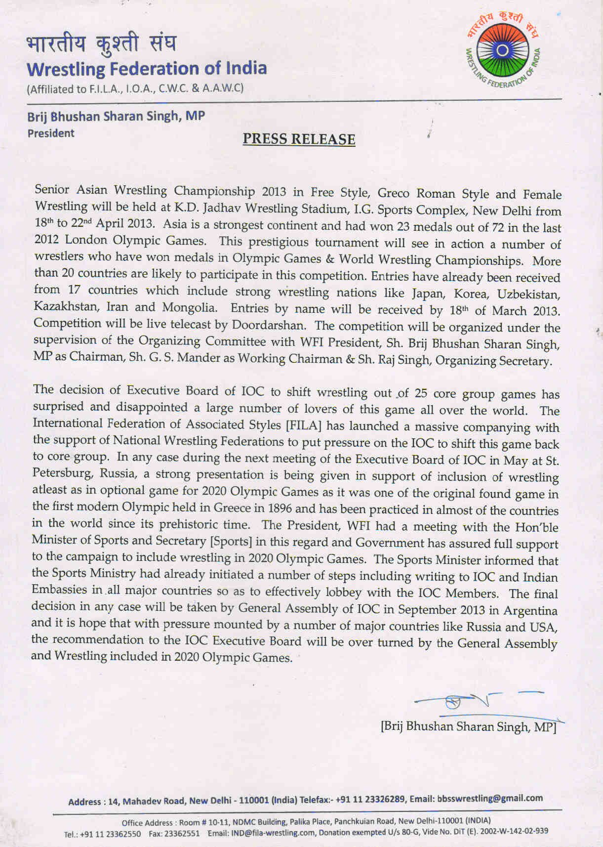 2013 Senior Asian Wrestling Championships,April 18-22, New Delhi (India)