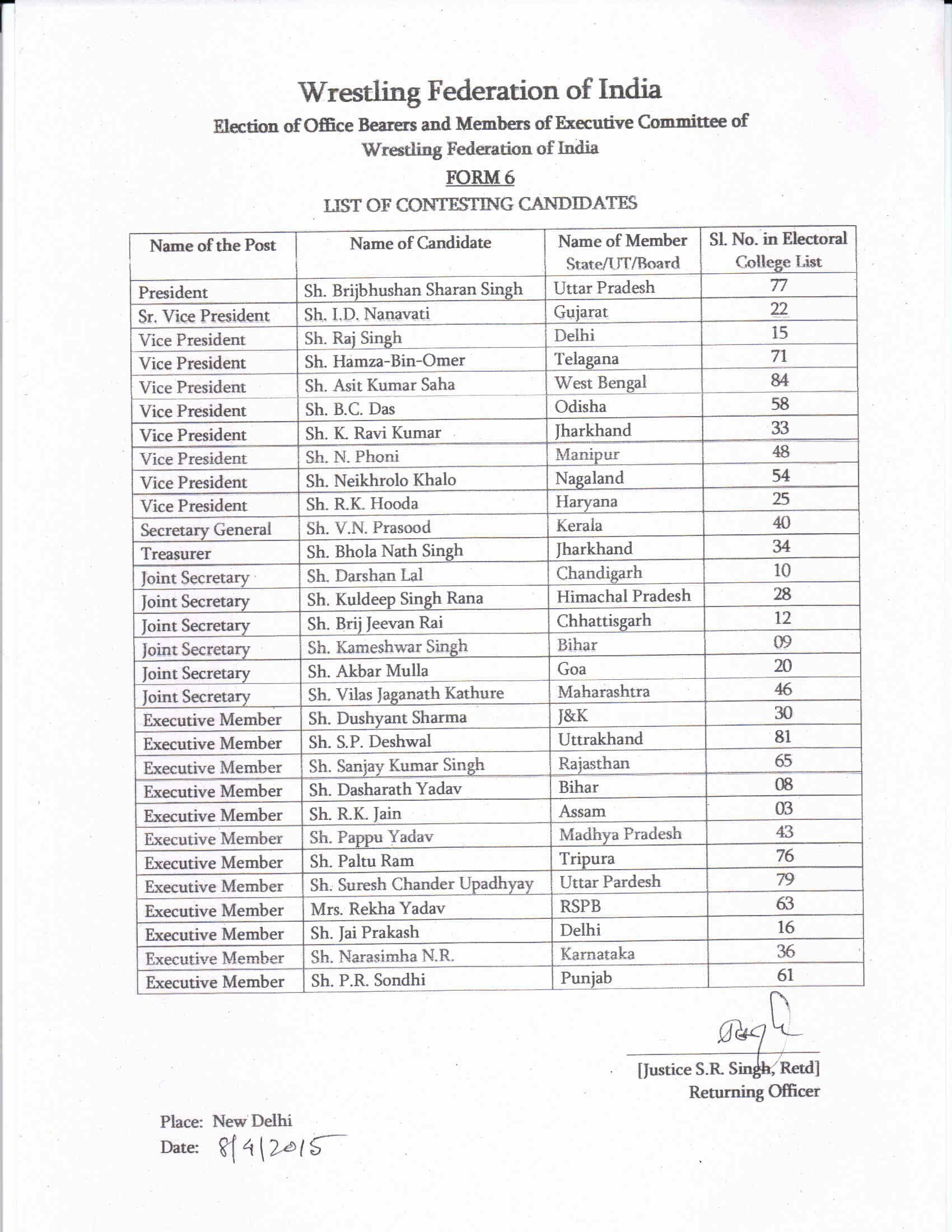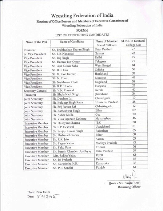 WFI Election - List of Contesting Candidates