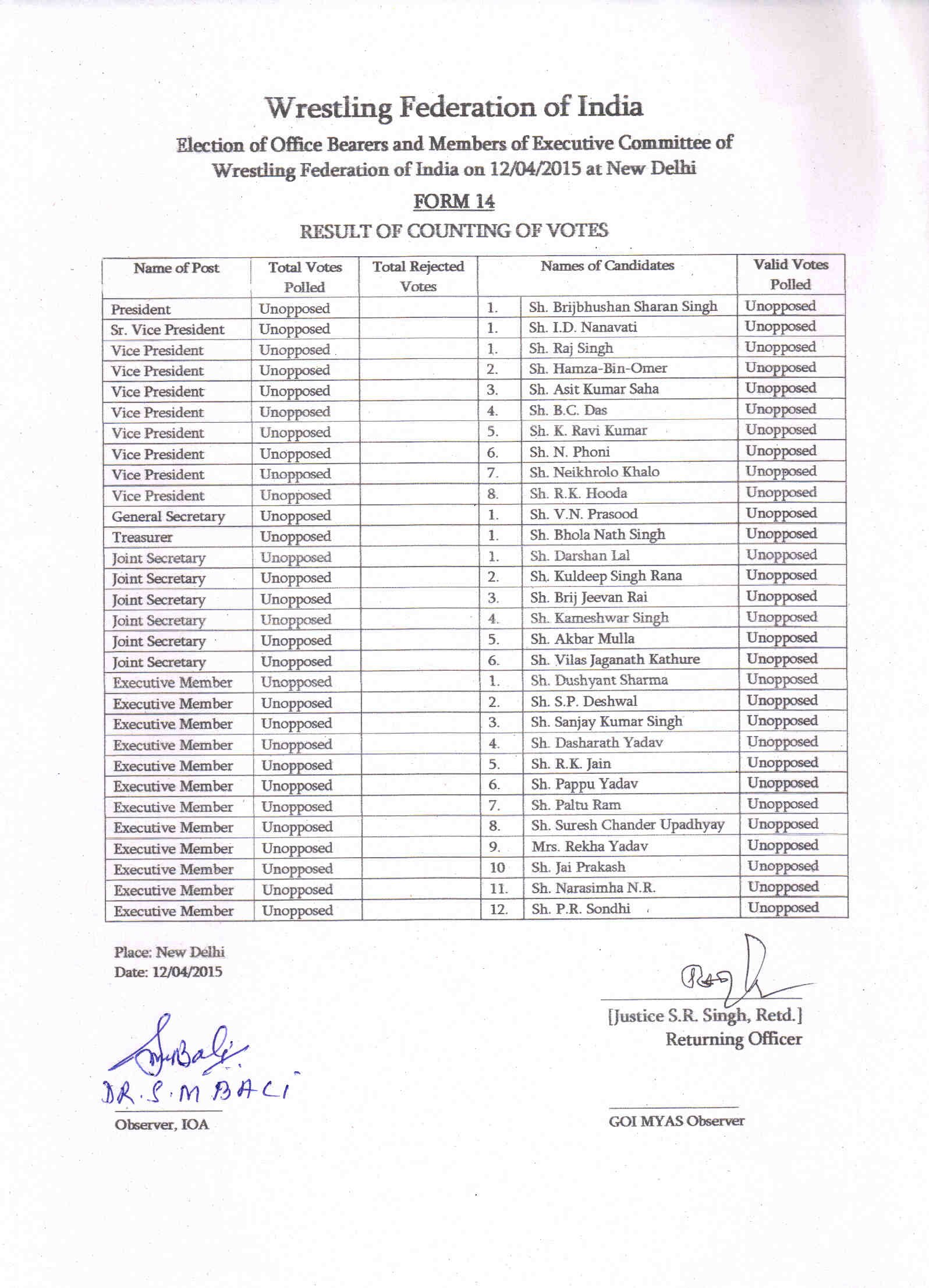 WFI Election - List of Contesting Candidates